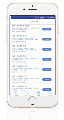 學生(shēng)微(wēi)信端申報(bào)報(bào)修內(nèi)容,後台分(fēn)單派單,維修人(rén)員(yuán)APP接受信任及時(γshí)維修處理(lǐ)